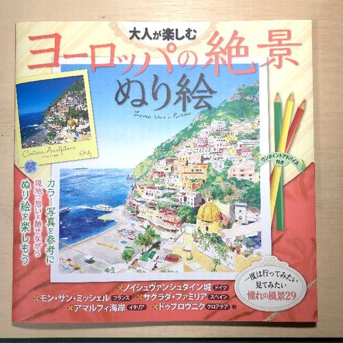 こんにちは。 先日、買い物の帰りにチラッと本屋さんに寄ってみたのですが、初めて見る塗り絵があったので思い切って買ってみました。 【大人が楽しむヨーロッパの絶景ぬり絵】という本です。 2020年11月1日初版発行 と書いてあります。 けっこう新しい本で…