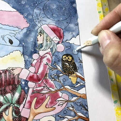 こんにちは、たまるもです(*'ω'*) 前回はクリスマスの塗り絵だったのですが、シーズンが過ぎる前にもうひとつクリスマスの塗り絵に挑戦したいと思いまして、大急ぎで取りかかりました。 塗ったのは中村佑介さんの【COLOR ME】という塗り絵です。 この本の中…