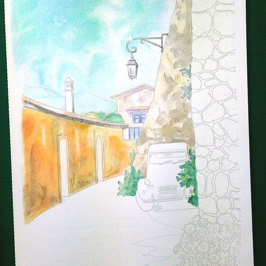 前回に引き続き【大人の塗り絵 南仏の街角の風景編】を水彩画風に塗っていきます。