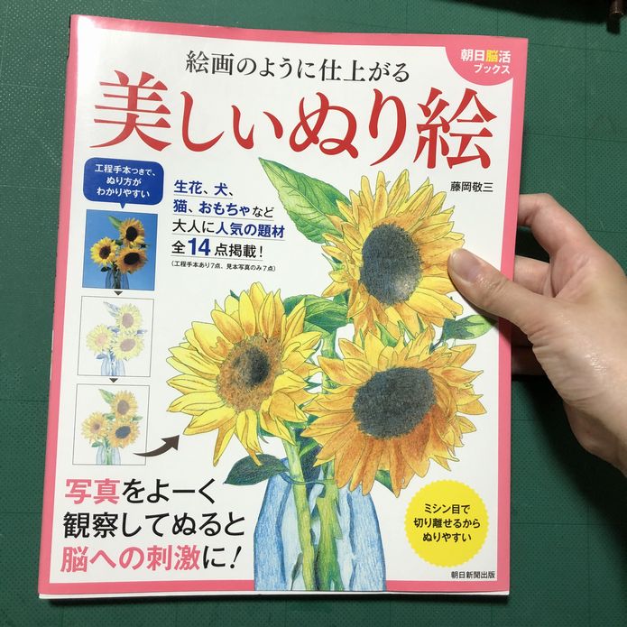 本来はこの塗り絵、水彩色鉛筆用に作られた本なのですが、ハードパステルと油性色鉛筆のプリズマカラーで塗ってみました。