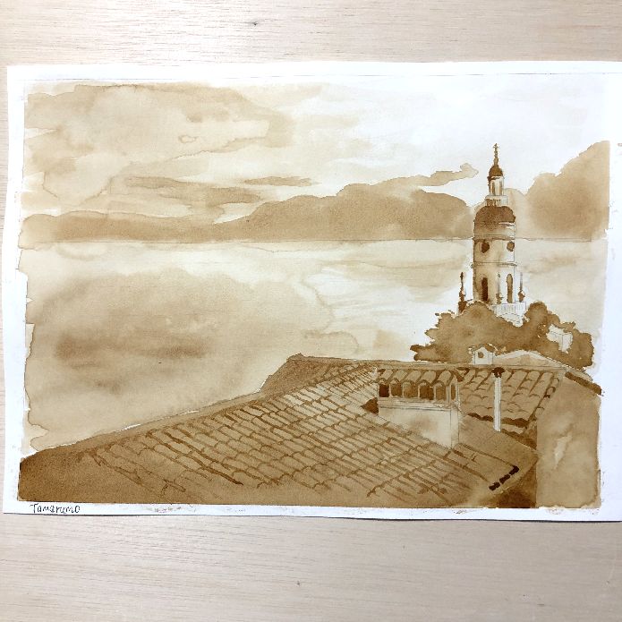 絵の具より手軽ですし、コーヒーの香りに癒されます!