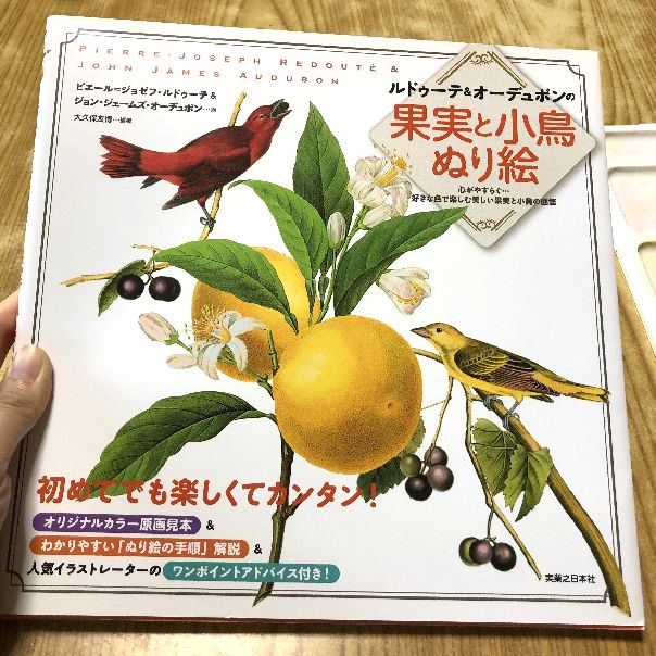 今日の塗り絵は食欲の秋と芸術の秋にふさわしいのを選んでみました。【ルドゥーテ&オーデュボンの果実と小鳥ぬり絵】。